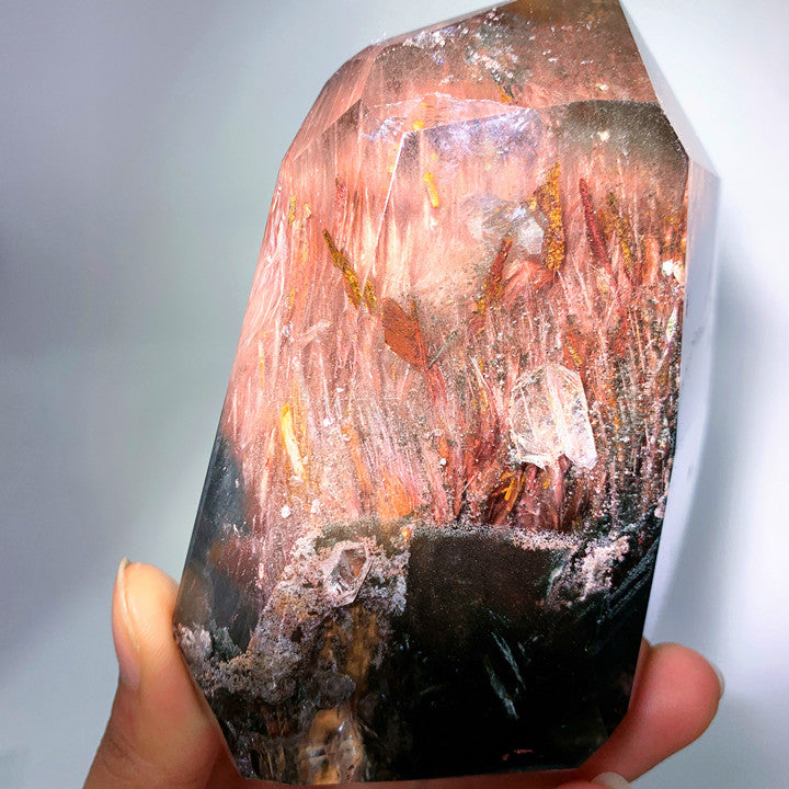 Garden quartz with amphibole tower